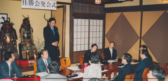 2001年6月12日、野田佳彦氏は旧統一教会の友好団体「国際勝共連合」の関係者と会合を開いていた。公開された写真には、金屏風の前で教団関係者と談笑する野田氏の姿が鮮明に写っており、壁には**「佳勝会発会式」という文字が。 関係者の証言によれば、この名称は「野田佳彦」と「勝共連合」**から一文字ずつ取ったものであるという。